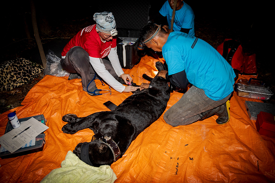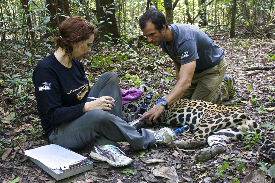 Epidemiologia: estudo e monitoramento contínuo da saúde da população de onças-pintadas da Reserva Mamirauá, buscando determinar a exposição desses animais a agentes infecciosos, realizando exames clínicos, e exames de sangue e bioquímicos dos felinos.